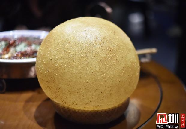 點(diǎn)菜時(shí)看到光頭司令大麻圓時(shí),小婕非常好奇,麻圓是有多大?果然,是麻圓plus版,面上沾滿白芝麻,戴上餐廳配備的塑料手套,邊撕邊吃,嚼起來甜糯香口,吃得停不下來!但一定要趁熱吃!熱的時(shí)候酥香, 冷吃很膩,也有些塞牙縫。分量較大,兩個(gè)人是吃不完的。