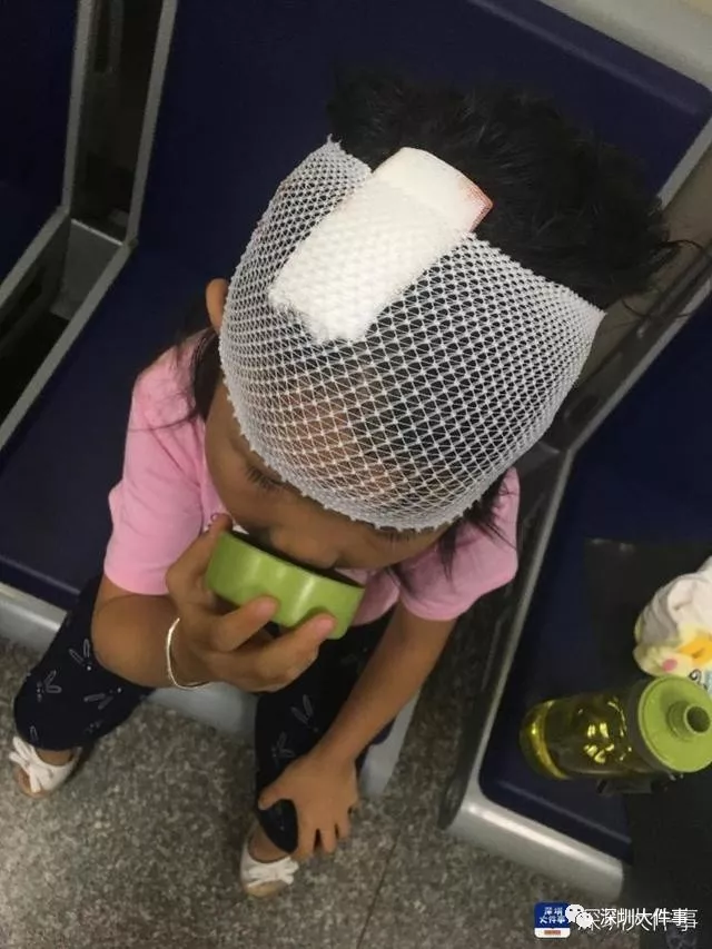 據(jù)女童媽媽介紹,當(dāng)時(shí)一家人剛準(zhǔn)備出村去散步,走到美宜佳門(mén)口時(shí),聽(tīng)見(jiàn)砰的一聲,女兒的身子就往爸爸身上歪斜過(guò)去。女童爸媽都被嚇壞了,手忙腳亂將女兒抱起來(lái),發(fā)現(xiàn)女兒的頭部被砸了一個(gè)窩,鮮血直流。