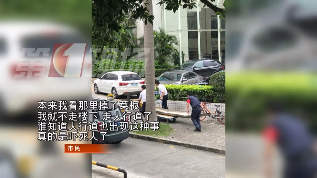 而且,這已經(jīng)不是第一起高空墜物事件了。前不久,一塊砧板就從某戶人家陽臺(tái)墜落到地面,所幸只是擦傷了一位路人。