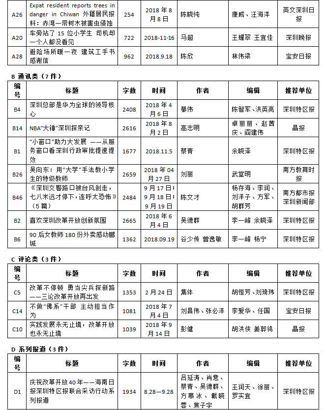 第26屆(2018年度)深圳新聞獎獲獎作品目錄