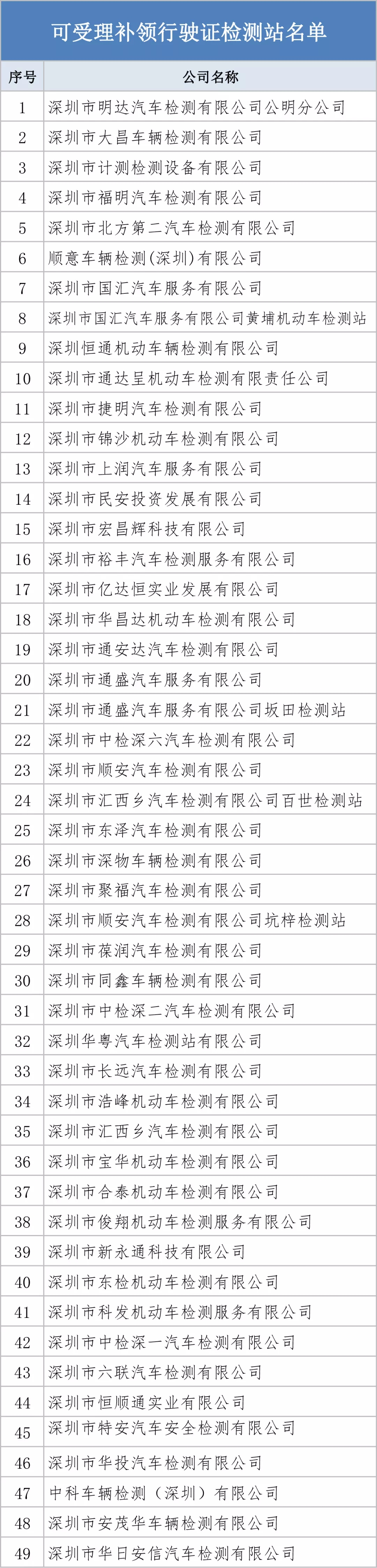 僅限深圳機動車,在下列49家檢測站辦理年檢業(yè)務才可以在檢測站申請補換領行駛證!