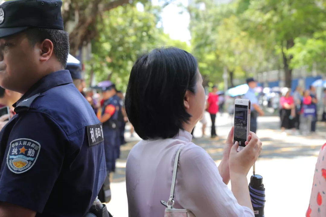 與往年不一樣,今年高考雖無(wú)風(fēng)雨,但是酷暑難耐,近500名送考家長(zhǎng)已經(jīng)在校門(mén)外站了2個(gè)多小時(shí)了。隨著離考試結(jié)束時(shí)間越來(lái)越近,原本還平靜的人群漸漸開(kāi)始騷動(dòng)起來(lái)。為了緩解家長(zhǎng)們焦慮的心情,林志強(qiáng)跟家長(zhǎng)們建議,“一會(huì)兒學(xué)生們考完試出來(lái)咱們給他們鼓鼓掌!”“好!”林志強(qiáng)的建議立馬得到了家長(zhǎng)們的贊同。