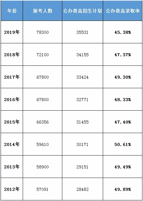 針對(duì)網(wǎng)友抱怨的,公辦普高的錄取率問題,小編手工統(tǒng)計(jì)了近8年來的普高招生計(jì)劃,部分?jǐn)?shù)據(jù)可能有出入,僅供參考。