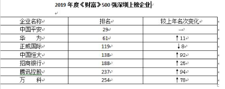 22日,2019年《財(cái)富》世界500強(qiáng)排名發(fā)布,深圳7家企業(yè)上榜