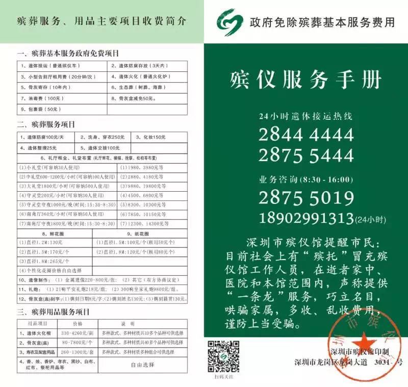 “深圳只有一家合法的殯儀館,就是深圳市殯儀館,其殯儀收費(fèi)標(biāo)準(zhǔn)可以通過‘深圳民政在線’的‘殯儀服務(wù)’查詢?!笔袣浌芩嚓P(guān)負(fù)責(zé)人表示,市民也可以關(guān)注“深圳市殯儀館”的微信公眾號(hào)查詢治喪流程、聯(lián)系電話和收費(fèi)標(biāo)準(zhǔn)。