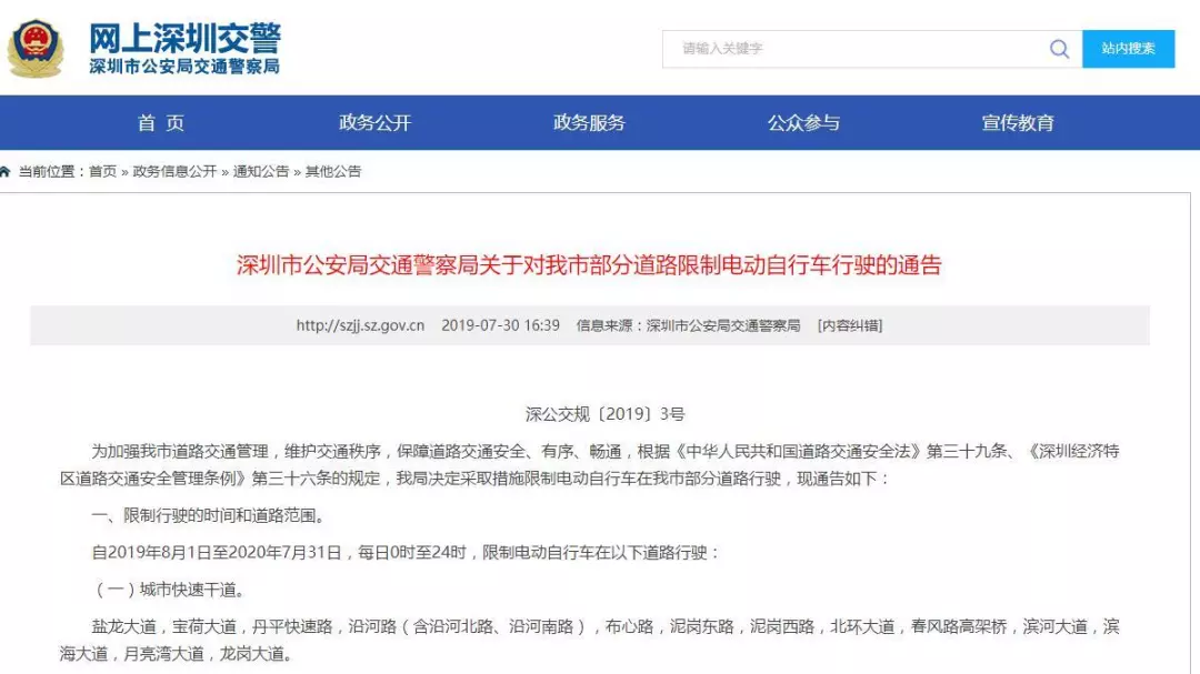 深圳交警發(fā)布通告