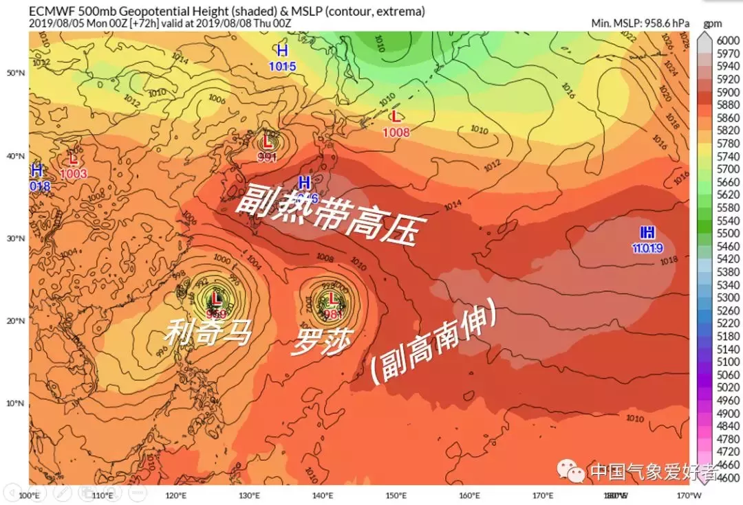 羅莎臺風將會是一個又大又強的臺風。由于個頭太大,副高壓不住,所以它不會來我國,最大可能是緩慢北上登陸日本。不過,羅莎將會阻止副高在利奇馬南側西伸,并且對利奇馬有互斥作用,是利奇馬臺風的“導演”之一。總體看來,羅莎將會對利奇馬施加向西的作用力,促使利奇馬更靠近我國。