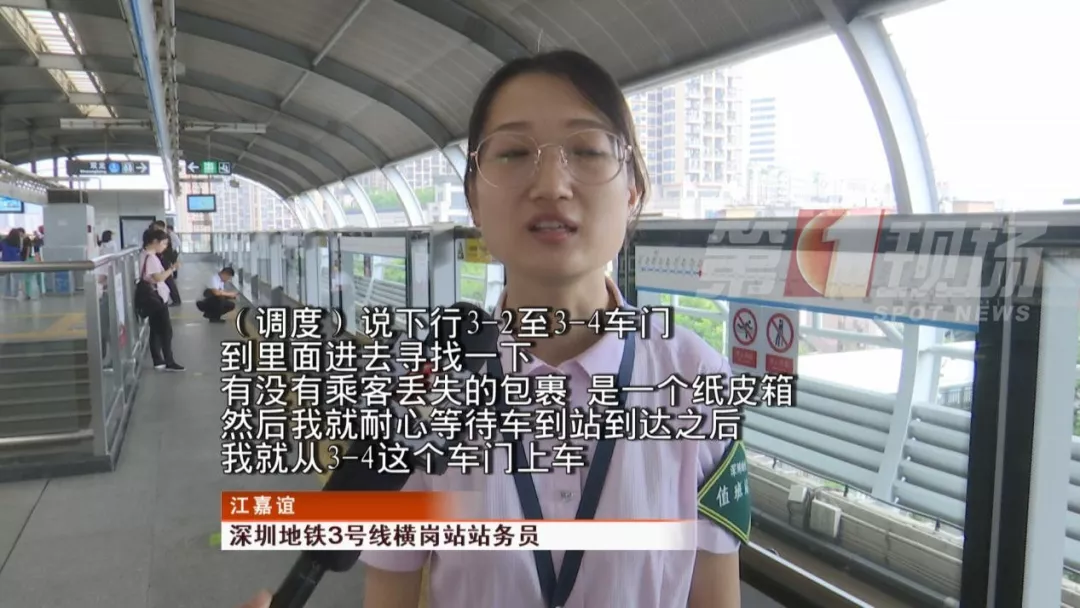 當(dāng)時(shí),一輛列車(chē)即將到達(dá)龍崗的橫崗站,站務(wù)員從3-4號(hào)門(mén)上車(chē)尋找。最終,站務(wù)員在列車(chē)座位下面找到了乘客遺失的紙箱,并通知乘客前往橫崗站。