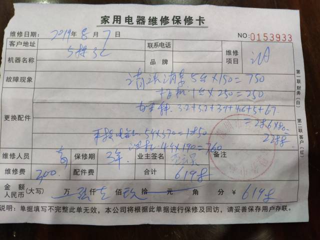 藍(lán)先生的妹妹在58同城小助手,找到了深圳市易臣國(guó)際貨運(yùn)代理有限公司,并預(yù)約了上門清洗空調(diào)的服務(wù)。當(dāng)師傅上門以后,除了清洗外,還說空調(diào)存在多個(gè)問題,如需要加雪種(學(xué)名“氟利昂”)、線路老化、空調(diào)漏水等,6臺(tái)空調(diào)整體清洗加修理下來,藍(lán)小姐當(dāng)天共花費(fèi)6618元。
