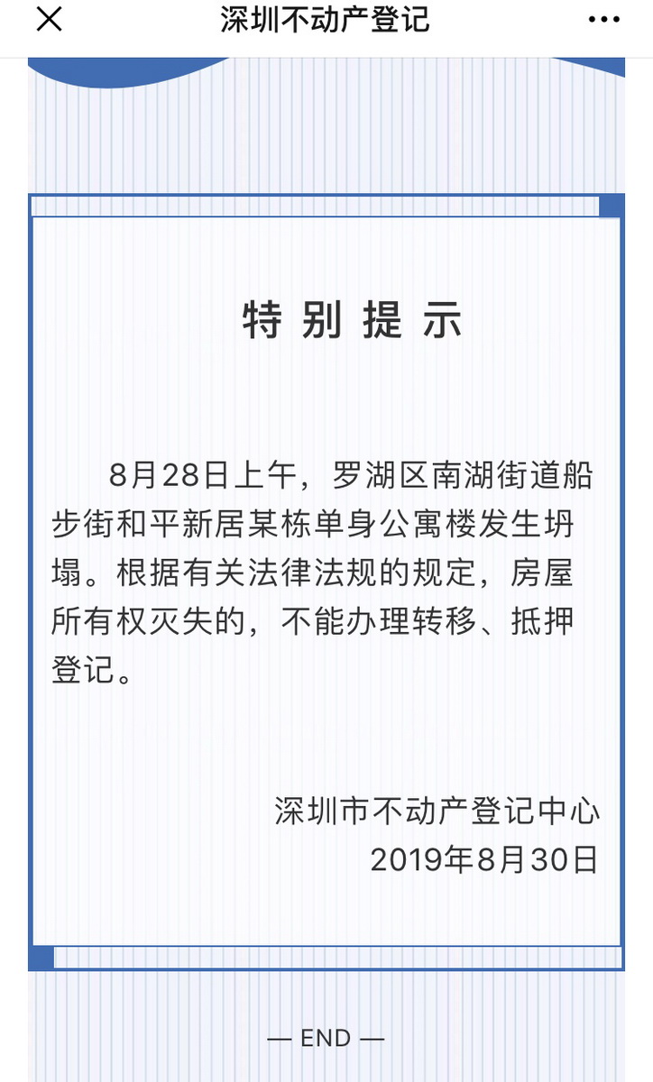 “拆遷已動(dòng)工”“拆遷物業(yè)”“房子倒了,坐等拆遷”……28日,羅湖區(qū)和平新居單身公寓樓發(fā)生沉降傾斜。還沒了解清楚事情真相,朋友圈就開始傳出該小區(qū)“房價(jià)暴漲”的消息。據(jù)媒體報(bào)道,事故發(fā)生后,購房平臺(tái)顯示該公寓的房價(jià)暴漲高達(dá)100萬,連旁邊的鐵路小區(qū)也“沾了光”,坐地起價(jià),一套80多平的房子當(dāng)天猛漲30萬。