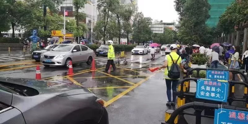各學(xué)校周邊路段車流不止