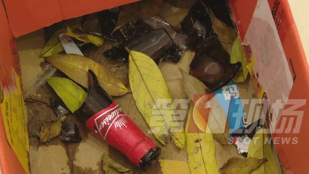 ▲險些傷人的啤酒瓶,砸落后已破碎