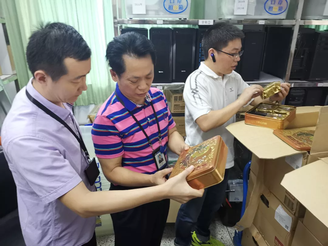 9月3日,深圳市市場(chǎng)監(jiān)督管理局羅湖監(jiān)管局接到線索:一消費(fèi)者通過(guò)微信渠道購(gòu)買一批香港知名品牌月餅,收貨后懷疑為假冒商標(biāo)食品并向口岸派出所報(bào)案。當(dāng)天上午,羅湖監(jiān)管局執(zhí)法人員與羅湖公安分局口岸派出所民警迅速組成聯(lián)合執(zhí)法組展開(kāi)行動(dòng),查獲涉嫌假冒香港知名品牌的月餅300盒,經(jīng)商標(biāo)權(quán)利人現(xiàn)場(chǎng)鑒定,初步認(rèn)定其中260盒為侵犯商標(biāo)權(quán)食品,40盒為香港生產(chǎn)的無(wú)中文標(biāo)簽食品。