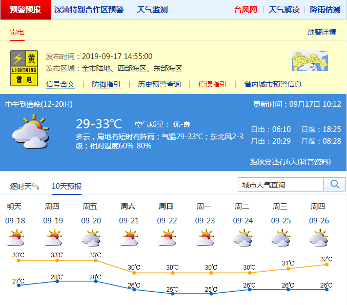 深圳市氣象臺于9月17日14時55分在全市發(fā)布雷電預(yù)警,預(yù)計(jì)60分鐘內(nèi)全市將受雷電影響,按照防御預(yù)案停止戶外易燃易爆危險作業(yè),并加強(qiáng)?;瘓鏊踩芾?。