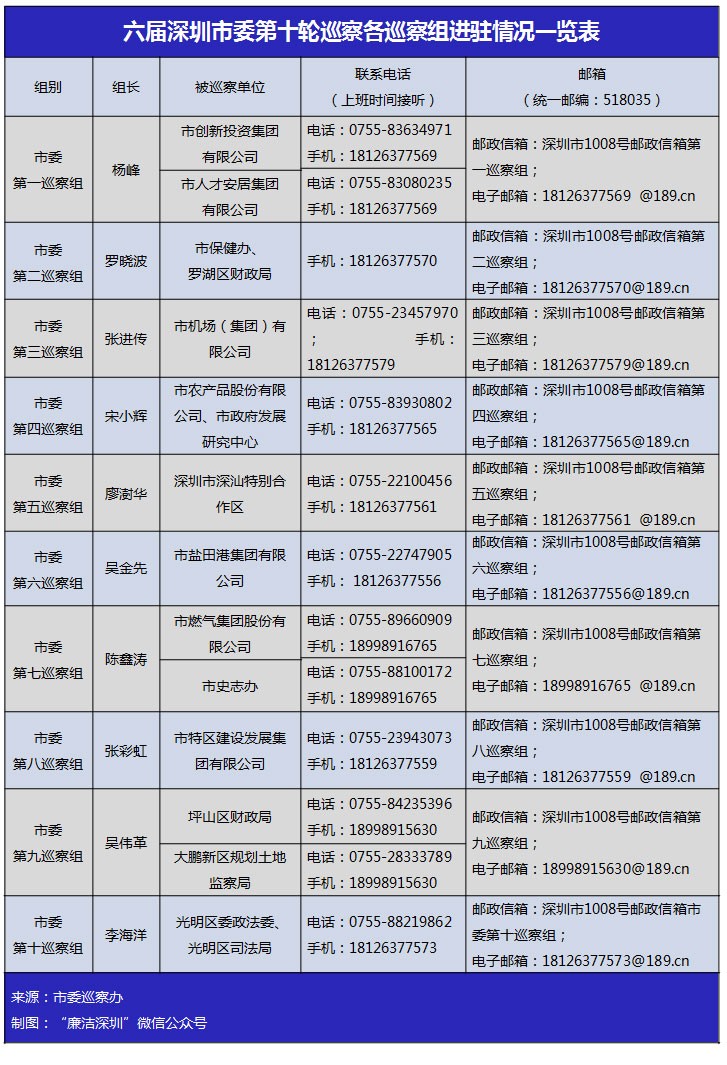 六屆深圳市委第十輪巡察完成進(jìn)駐 各巡察組聯(lián)系方式公布