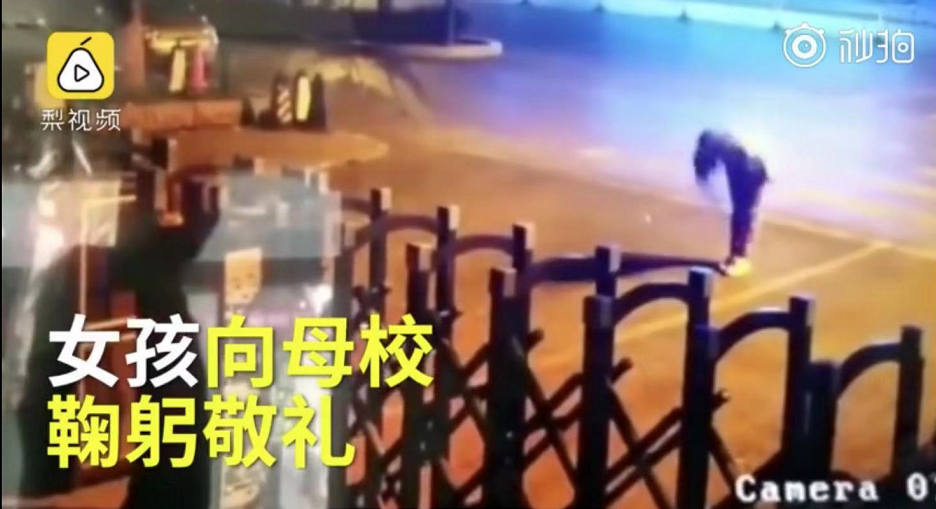 突然停下對(duì)著學(xué)校端正敬禮,
