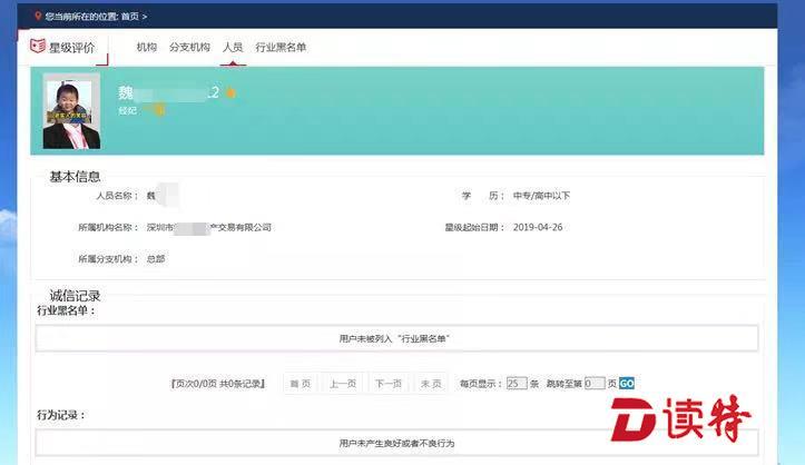模塊中涉及到中介機構(gòu)和中介人員的星級評價,來自深圳市房地產(chǎn)中介協(xié)會(以下簡稱“深房中協(xié)”)與各大中介機構(gòu)組成的專家委員的定期聯(lián)合評定。無論是中介人員還是中介機構(gòu),都需從一星經(jīng)數(shù)次評選提升至五星等級,越高星級的人員與機構(gòu),意味著更少的投訴信息與更加優(yōu)良的誠信記錄。目前上線的模塊中,僅有大約10%的中介人員獲得了五星認(rèn)定。