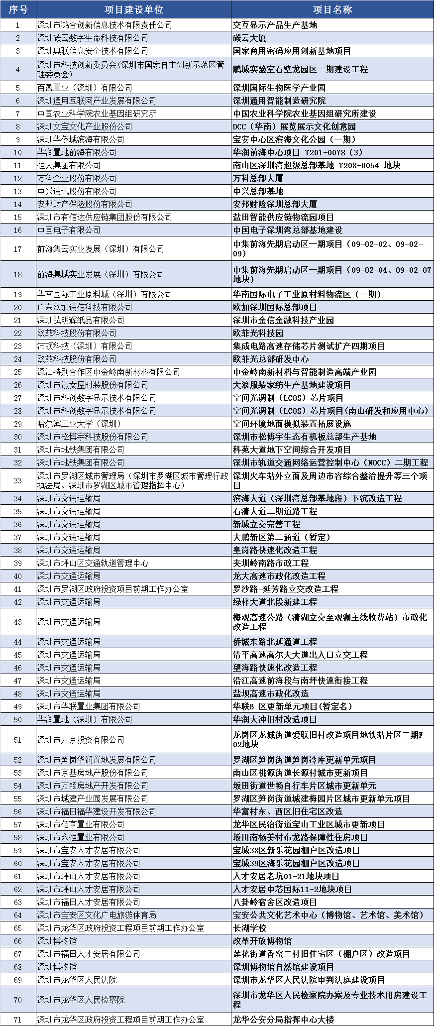晶報APP記者24日從深圳市發(fā)改委官網(wǎng)獲悉,《深圳市2019年重大項目計劃》(增補)已正式印發(fā),現(xiàn)將項目清單對全社會進行發(fā)布。