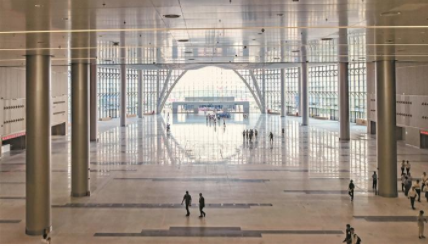 深圳國際會展中心嚴把質(zhì)量關,僅3年就完工,創(chuàng)造了會展中心建設的“深圳速度”。圖為北登錄大廳。
