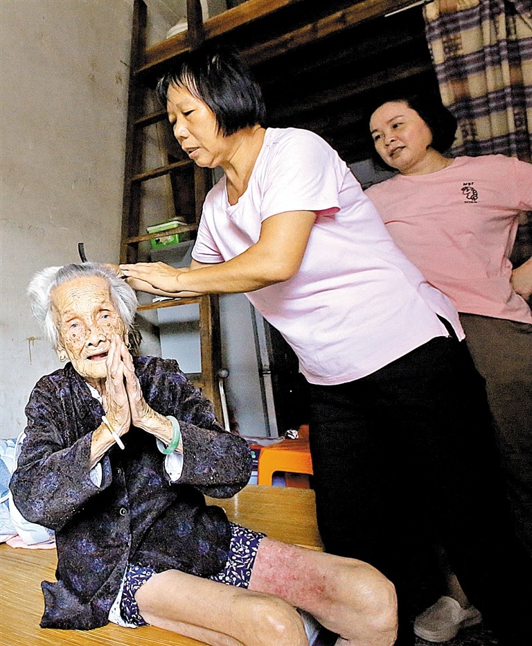 陳汝金老人喜歡打本地花牌,打到了99歲,后來腰部退化,不能久坐,她才沒有再打花牌。吃飯方面,陳汝金也有自己的主張,不求好不求貴,簡簡單單活到老,“外婆以前是生產(chǎn)隊的炊事員,直到去年她還能自己做飯呢。”在文小姐看來,如此長壽的外婆也沒有特別的養(yǎng)生之道,“保持好心態(tài),順其自然就是最長壽的秘方?!?/p>
