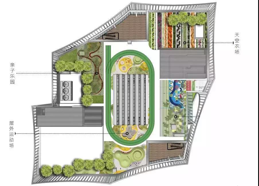 屋頂農(nóng)場(chǎng)充分利用空間,打造天空農(nóng)場(chǎng)、親子樂園、屋外運(yùn)動(dòng)場(chǎng)??罩械呐艿?,肥沃的土壤,瓜果蔬菜的金色豐收,讓自然在城市落地生根。小朋友們可以在其中,種植汗水,開花結(jié)果,收獲自然的饋贈(zèng)。