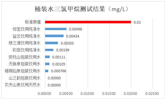 12款桶裝水污染物安全測試均符合標準要求。其中,耗氧量方面,所有飲用純凈桶裝水和其它飲用桶裝水耗氧量均符合標準要求,安托山、彩田、天脈泉和梧桐仙泉包裝飲用水受有機污染更少;所有飲用純凈桶裝水和其它飲用桶裝水三氯甲烷符合標準要求,農(nóng)夫山泉飲用天然水和山之韻包裝飲用水未檢出,表現(xiàn)更好。