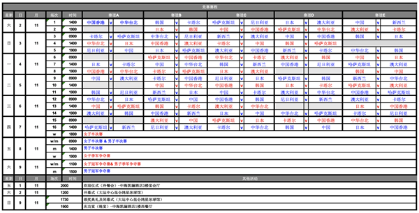 賽程表。