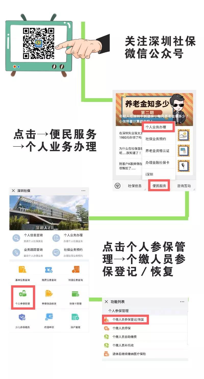怎樣給自己參保繳費(fèi)?深戶(hù)靈活就業(yè)人員有以下幾種渠道為自己參保繳費(fèi):登錄深圳市社會(huì)保險(xiǎn)基金管理局官網(wǎng)(http://hrss.sz.gov.cn/szsi)上的個(gè)人網(wǎng)上服務(wù)系統(tǒng),自助辦理。關(guān)注“深圳社?!蔽⑿殴娞?hào),在微信上辦理。在社保自助終端機(jī)上辦理。前往社保機(jī)構(gòu)的辦事窗口辦理。