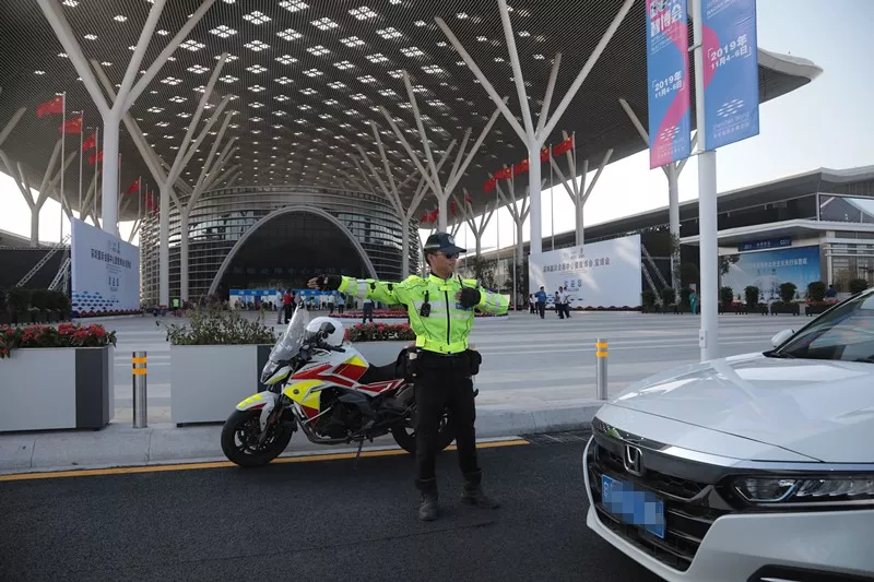 為確保現(xiàn)場交通正常通行,杜絕車輛違停等交通違法現(xiàn)象,深圳交警在展會期間對周邊交通加以管控。以深圳國際會展中心為中心,由內(nèi)至外分為交通核心區(qū)、交通管控區(qū)和交通疏導區(qū)。