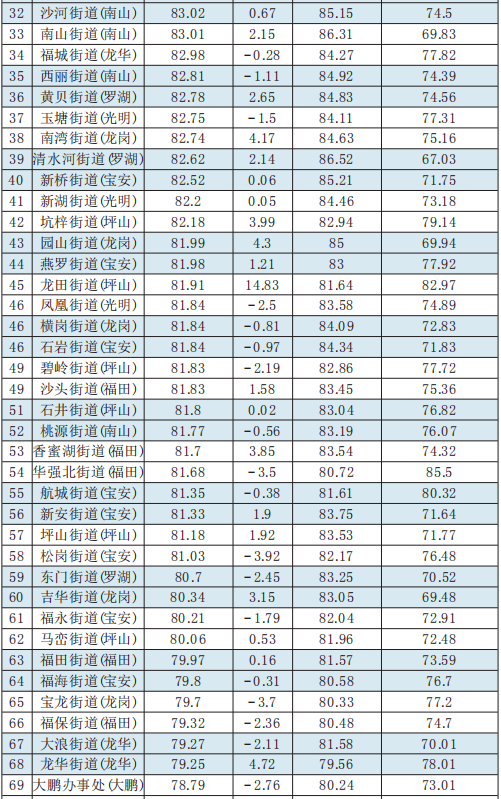 10月份,各區(qū)排名榜上,鹽田區(qū)“勝不驕”,繼續(xù)以優(yōu)異的成績保持第1,拿下“五連冠”,且在今年前10個月的測評中,鹽田區(qū)已經8次取得第一名。羅湖區(qū)則“敗不餒”,在去年連續(xù)排名靠后甚至墊底的情況下,毫不氣餒,正視問題,補齊短板,理順機制,今年指數(shù)得分和排名穩(wěn)步提升,10月份更奪得榜眼,現(xiàn)場考察指數(shù)全市第1,轄區(qū)3個街道進入全市排名前6,5個進入前15。而龍華區(qū)和龍崗區(qū)則連續(xù)兩月排在倒數(shù)后三,龍崗區(qū)平湖街道連續(xù)3個月排在后5,應對照測評情況找問題,出實招,加大整治提升工作力度。