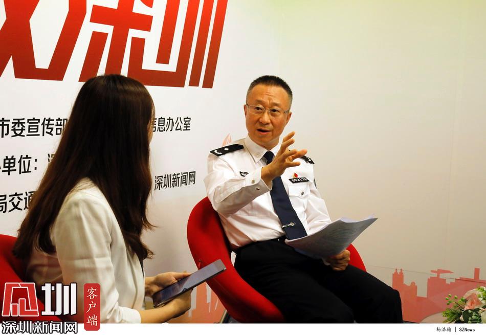 2019年11月15日,福田區(qū),深圳市公安局交通警察局副局長馮新毅在鏡頭前闡述新交規(guī)內(nèi)容。