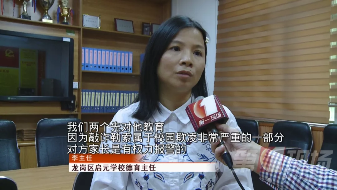 這起敲詐勒索案引起了龍崗區(qū)啟元學(xué)校的重視,學(xué)校表示,接下來,學(xué)校將繼續(xù)整頓校風(fēng)校紀(jì),對全體學(xué)生進行校園欺凌的維權(quán)教育,如果遇到被敲詐勒索的事件,一定要第一時間向老師或家長檢舉揭發(fā),消滅在萌芽狀態(tài)。