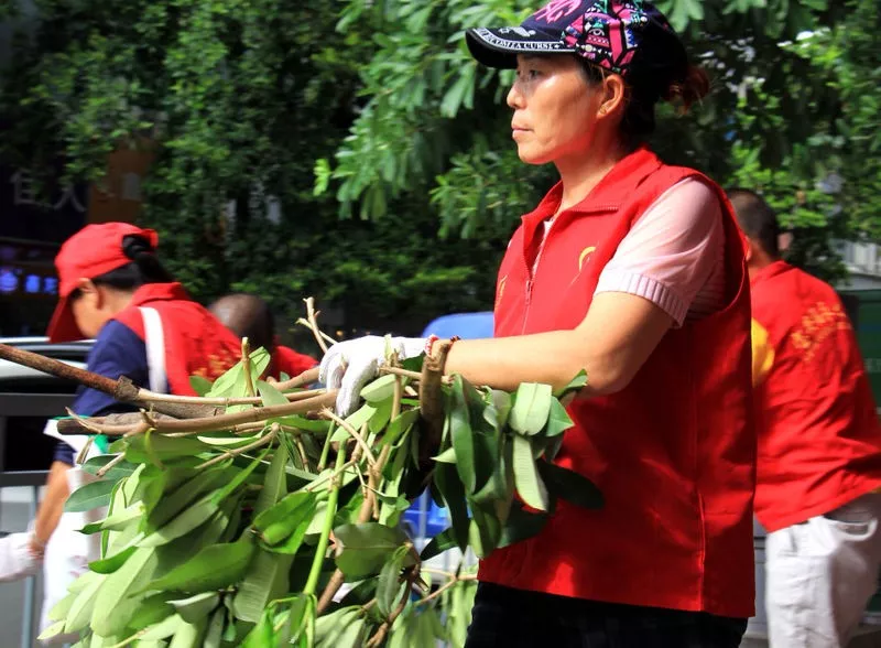 ▲“紅馬甲”清潔臺(tái)風(fēng)“山竹”過(guò)后的街道