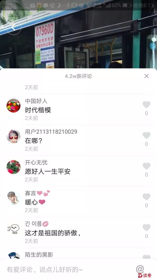 暴雨中,一輛深圳公交車被湍急的水流圍困,為了安全轉(zhuǎn)移車上的乘客,司機(jī)冒雨到附近找來(lái)兩塊木板,在站臺(tái)和公交車間搭起一座“木橋”,車上乘客沿著“木橋”被攙扶著一個(gè)個(gè)安全地撤離。而這一幕,被乘客拍成短視頻發(fā)到抖音,短短一星期,播放量達(dá)400多萬(wàn),獲得點(diǎn)贊254萬(wàn),評(píng)論多達(dá)4萬(wàn)多條,成為抖音上最火爆的“深圳好聲音”之一。