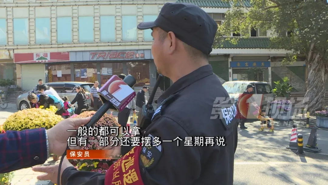 大家搬花當(dāng)然開心,但公園門口維持秩序的保安卻叫苦不迭。他們說,并不是所有的花都可以拿走的,如果不加控制,恐怕連花盆都剩不下了。