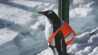 小企鵝背著書(shū)包特別興奮,目不轉(zhuǎn)睛地盯著國(guó)寶,敲治愈的!
