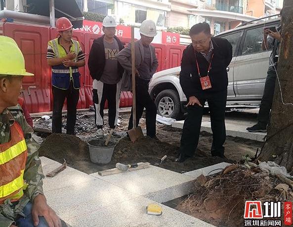 深圳市人大代表胡桂梁(右一)在施工現(xiàn)場進行調(diào)研。