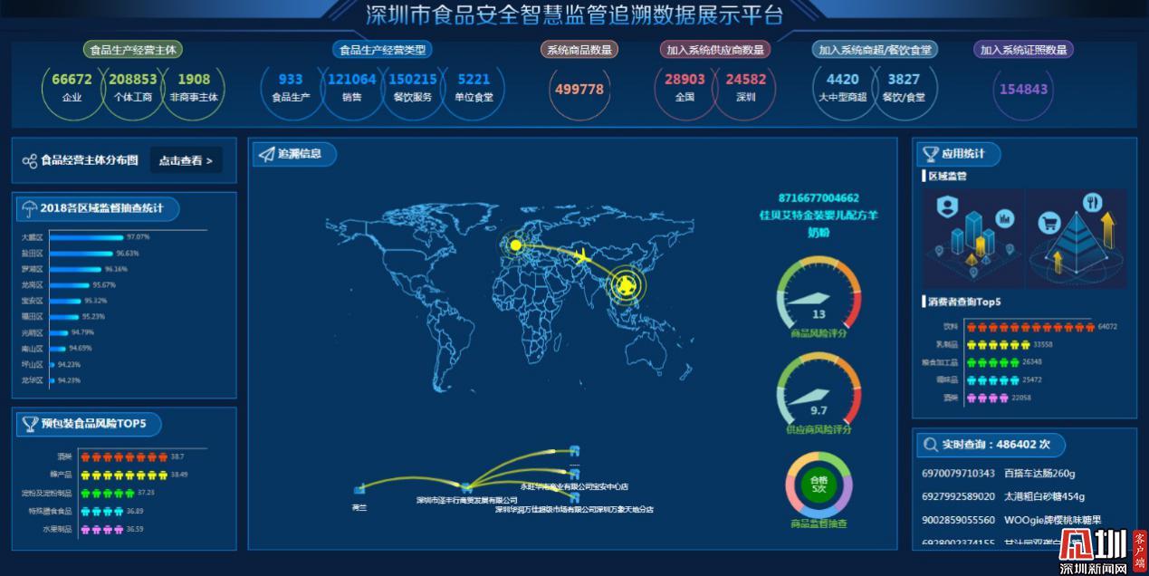 深圳市食品安全智慧監(jiān)管追溯數(shù)據展示平臺首頁