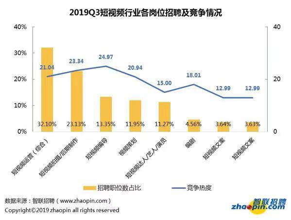 綜合運營及視頻拍攝是短視頻領(lǐng)域的熱門崗位