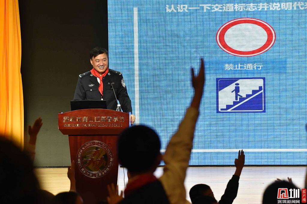 2019年2月20日,南山區(qū)荔香學(xué)校,市交警局局長徐煒正在向?qū)W生們講述交通安全知識(shí)。為加強(qiáng)2019年度新學(xué)期校園交通安全宣傳工作,深圳交警聯(lián)合市教育局在新學(xué)期開學(xué)期間,在全市范圍開展“交通安全教育第一課”授課活動(dòng)。