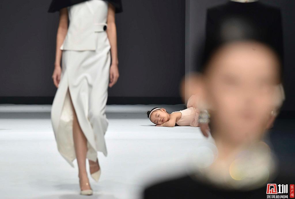 2019年3月14日,深圳時(shí)裝周首秀,一位在T臺(tái)上睡著的小女孩。