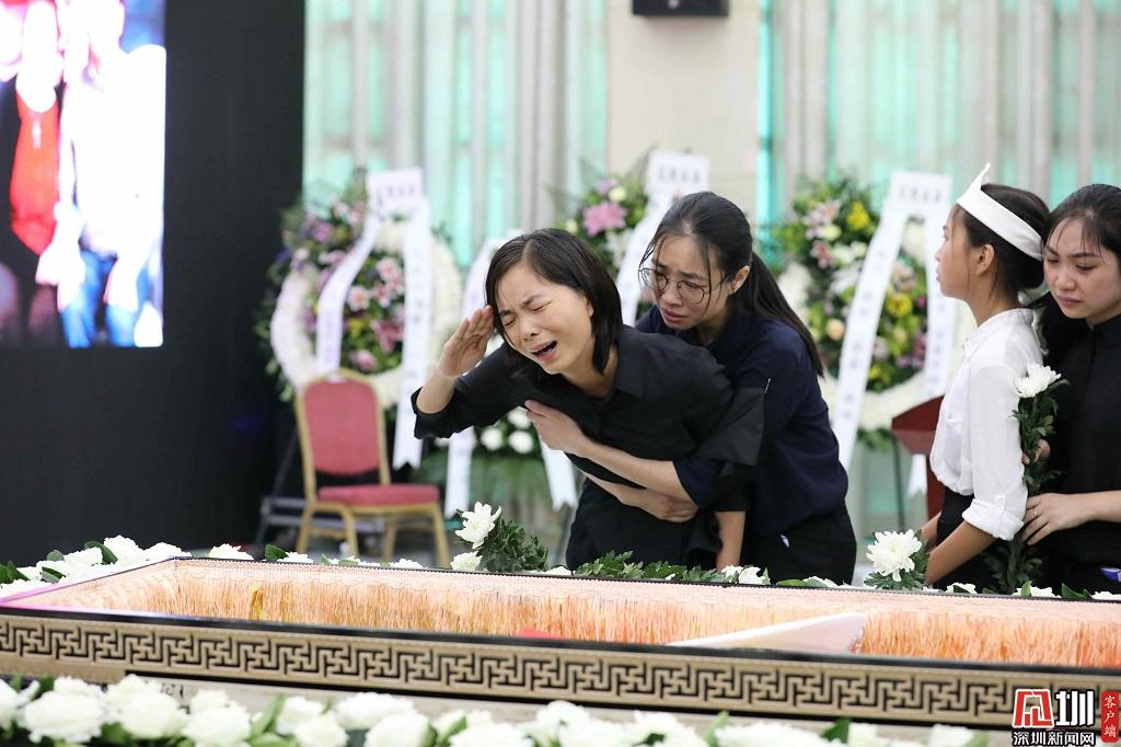 2019年8月6日,深圳殯儀館,交警劉海峰因公犧牲,告別儀式上,劉警官的妻子向她的丈夫敬禮。