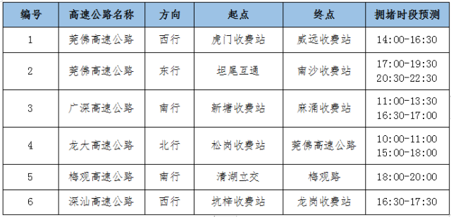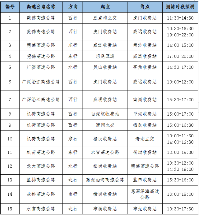 具體來看主要高速公路離深擁堵時段預測,如果可以,避開這些時間: