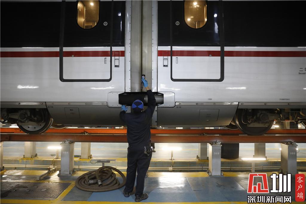 見圳客戶端·深圳新聞網(wǎng)2020年1月15日訊(見圳客戶端、深圳新聞網(wǎng)記者 涂勝 楊浩翰 陳智妍 韓翔 )2020年春運(yùn)已經(jīng)開始,南國高鐵“萬箭齊發(fā)”,滿載著旅客回家的期盼與鄉(xiāng)愁,駛向祖國的五湖四海。1月14日深夜,深圳新聞網(wǎng)記者探訪了地處“特區(qū)”的深圳動車運(yùn)用所,這里的工作人員正不分晝夜地工作,全力保障春運(yùn)安全有序運(yùn)行。