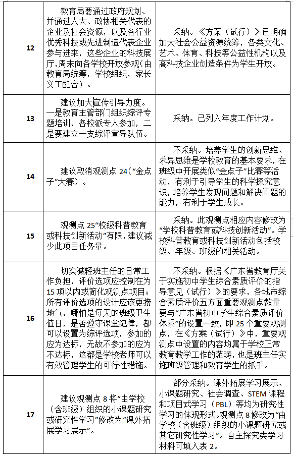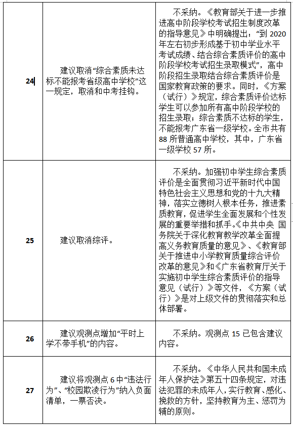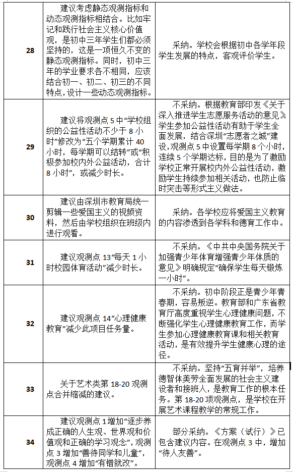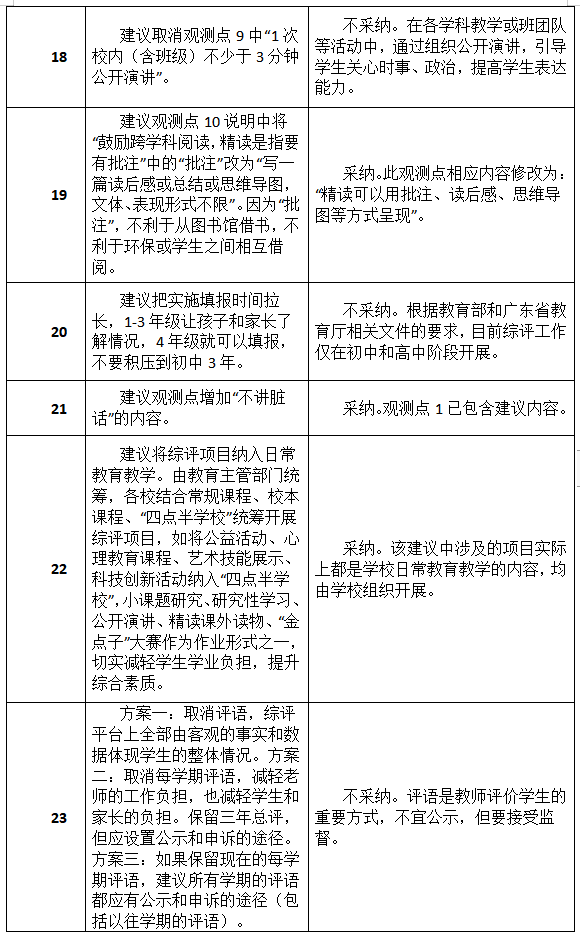 原標題:最新進展!深圳初中綜評新方案征集到34類建議,其中19類被采納或部分采納