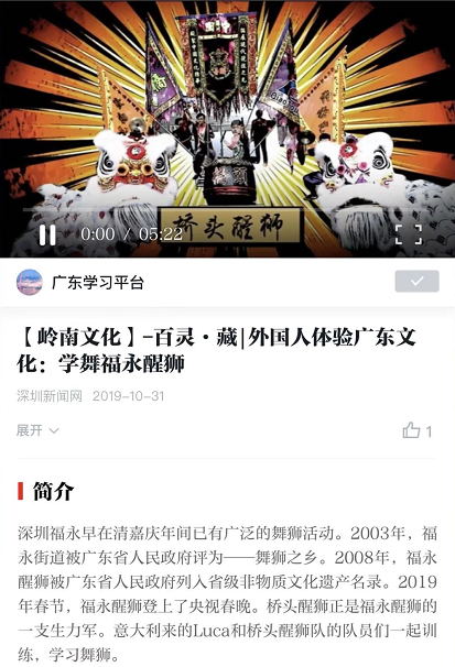 作品鏈接:IN視頻|外國人體驗(yàn)廣東文化:學(xué)舞福海醒獅
