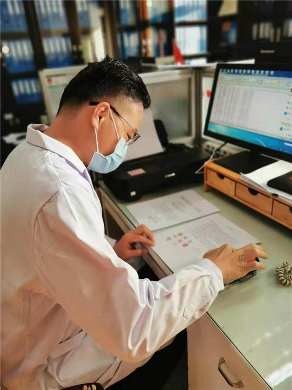 消化內(nèi)科苑仁杰醫(yī)生第一時間請纓到發(fā)診門診上班,這是他正在為發(fā)熱病人診治