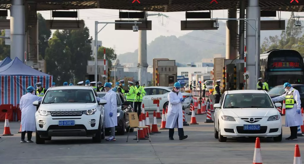 執(zhí)勤民警、醫(yī)務(wù)人員忙碌而有序地進(jìn)行體溫檢查。