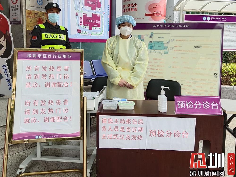 門診預檢分診臺(來院患者均需測量體溫)。