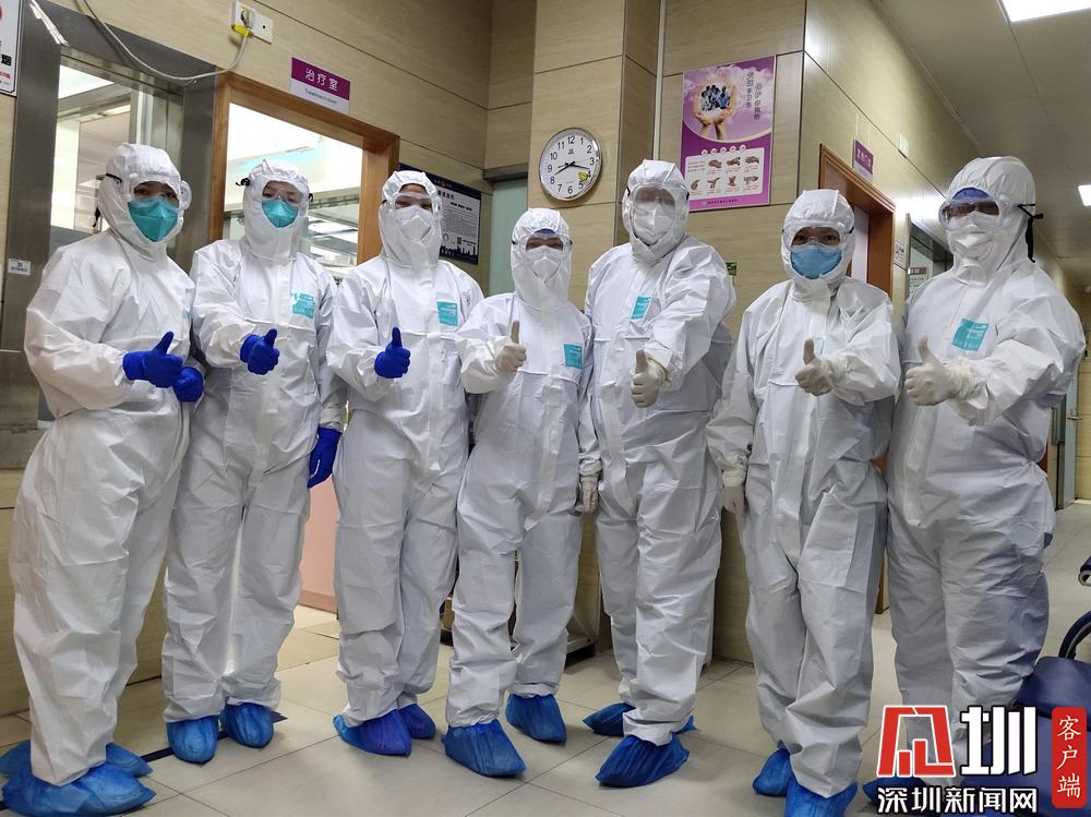 發(fā)熱門診工作人員相互鼓勵。